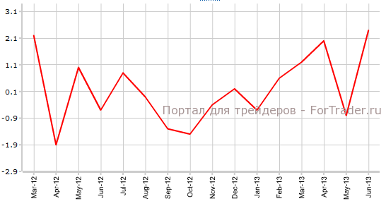 В июне объемы промышленного производства Германии выросли с отметки -0,8% до уровня 2,4%, превзойдя прогнозируемое значение 0,3%. В июле аналитики финансовых рынков прогнозируют сокращение объемов промышленного производства Германии до уровня -0,3%.