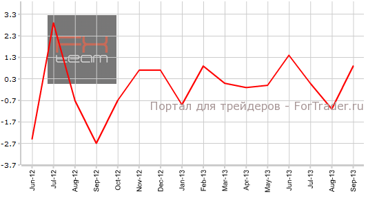 В сентябре объемы промышленного производства Великобритании выросли с отметки -1,1% до уровня 0,9%, превзойдя прогнозируемое экономистами увеличение до значения 0,5%. В октябре аналитики финансовых рынков прогнозируют сокращение объемов промышленного производства Великобритании до уровня 0,4%.