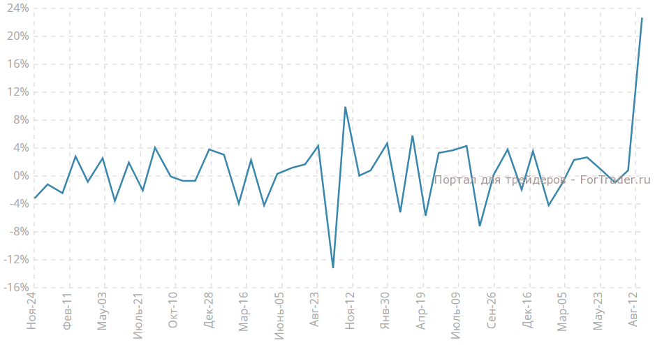 Изменение объема заказов на товары долгосрочного пользования прогнозируется на отметке -17.7% м/м в августе после сильнейшего роста в июле на 22.6% м/м, что обеспечит заказами предприятия еще длительное время, вследствие чего, новых заказов, вероятно, будет гораздо меньше в будущем.