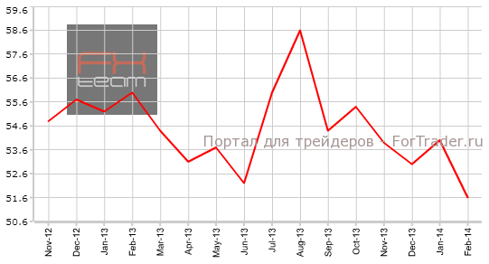 В феврале индекс деловой активности ISM в сфере услуг упал с отметки 54,0 до уровня 51,6, превзойдя ожидаемое экономистами сокращение до значения 53,5. В марте аналитики финансовых рынков прогнозируют рост индекса ISM Non-Manufacturing PMI до уровня 53,5.