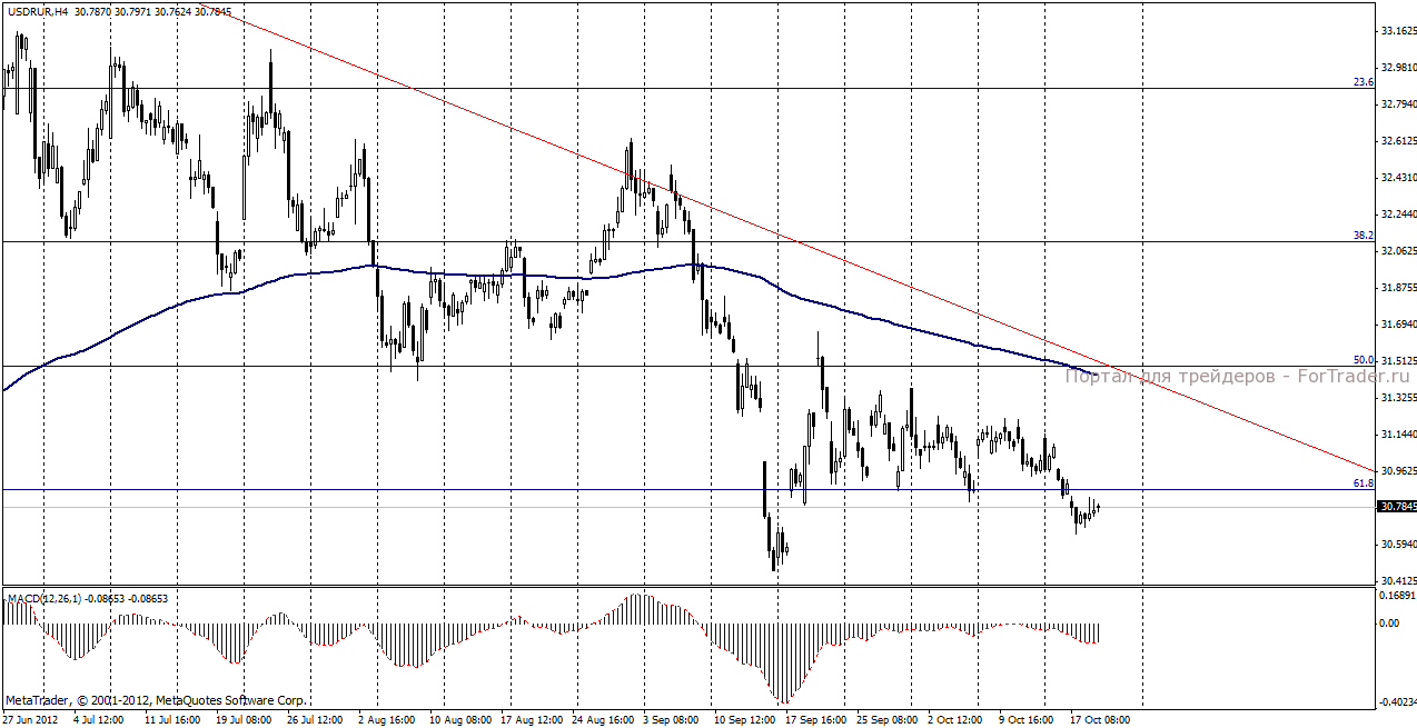 Сегодняшние торги на ММВБ начались снижением по отношению к доллару. Так, за первые полчаса торгов курс доллара США повысился на 376 пунктов (3,76 коп.). По мнению аналитиков журнала ForTrader, дальнейшее снижение котировок на нефть повлечет за собою ослабление курса рубля в рамках технической коррекции предыдущего роста.