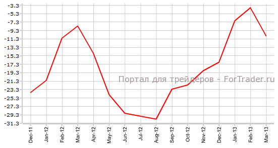 Политическая нестабильность в Италии, банковский кризис на Кипре, снижение индексов PMI Еврозоны в производственной сфере и секторе услуг, а также снижение показателей экономической уверенности, безусловно, найдет негативное отражение в инвесторском доверии, что дает экспертам журнала ForTrader основания предположить, что фактическое значение индекса Sentix может оказаться хуже прогнозируемого.