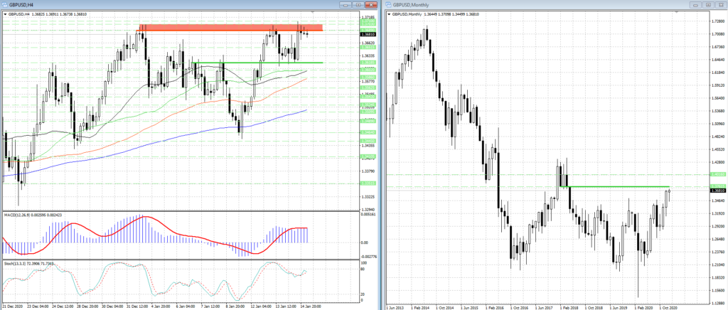 Отмена ‘медвежьего сценария’ произойдет в случае пробоя сильного уровня сопротивления 1.3689, который может открыть путь к уровням 1.3725, 1.37615 и 1.3800/10.