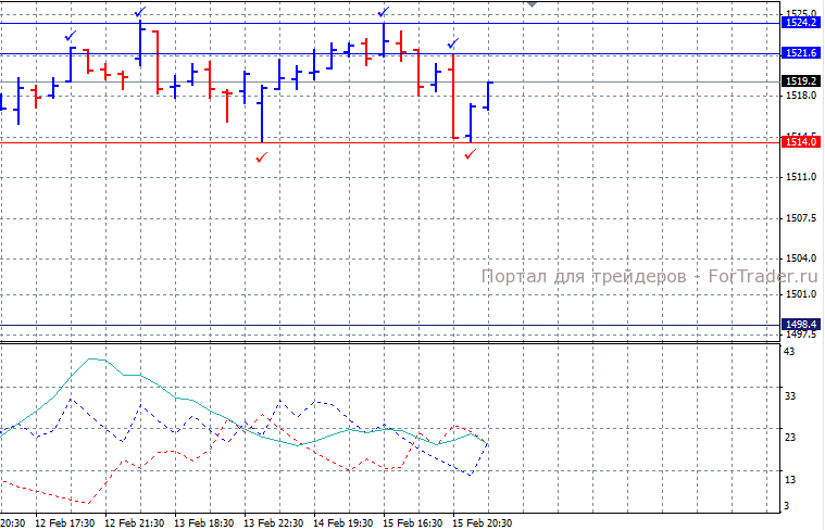 Ключевым уровнем выступает краткосрочный максимум 1521.6 преодоление которого откроет путь к очередному уровню краткосрочного максимума 1524.2. Уровнем сопротивления выступает краткосрочный минимум 1514.0, преодоление которого откроет путь к отметке 1511.0.