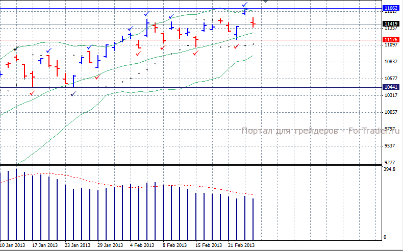 Ключевым уровнем по-прежнему выступает краткосрочный минимум 11176, преодоление которого откроет путь к поддержке 11000. Сопротивлением выступает уровень 11662, преодоление которого откроет путь к отметке 11700