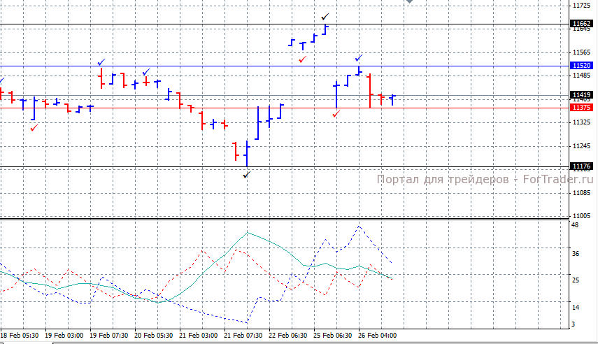 Уровнем сопротивления выступает краткосрочный максимум 11520, преодоление которого откроет путь к уровню среднесрочного максимума 11662. Преодоление краткосрочного минимума 11375 откроет путь к поддержке 11176.