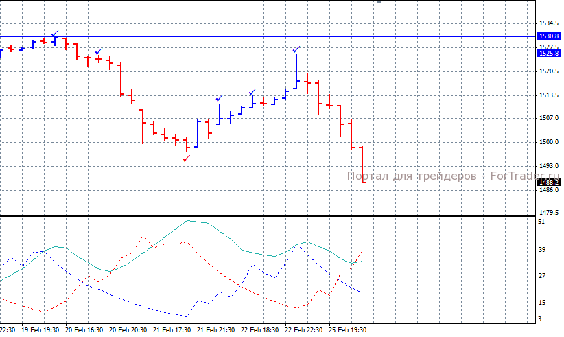 Ключевым уровнем выступает поддержка 1480.0, преодоление которой откроет путь к очередному уровню поддержки 1470.0.