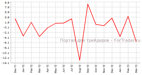 Согласно данным за март 2013 года заказы на товары длительного пользования США увеличились с отметки -3,8% до уровня 5,7%, превзойдя прогнозируемое значение 3,8%. В апреле аналитики финансовых рынков прогнозируют увеличение показателя до уровня 1,8%.