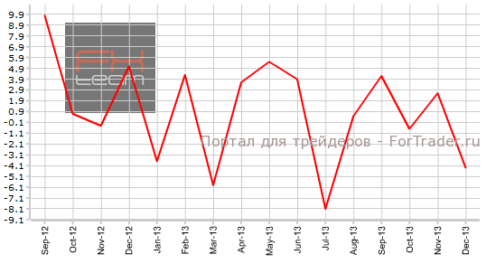 Согласно данным за декабрь 2013 года заказы на товары длительного пользования США сократились до уровня -4,3% с отметки 2,6%, превзойдя прогнозируемое экономистами значение 1,8%. В январе аналитики финансовых рынков прогнозируют изменение заказов на уровне -0,7%.