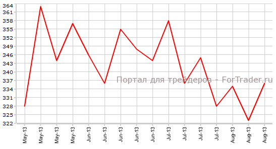 За неделю с 11 по 17 августа количество заявок на пособие по безработице выросло с уровня 323K до отметки 336К, превзойдя ожидаемый экономистами рост показателя до значения 330К. За неделю с 18 по 24 августа аналитики финансовых рынков прогнозируют снижение количества обращений за пособием по безработице до уровня 329К.