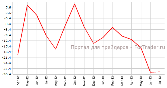 В июле количество обращений за пособием по безработице увеличилось с уровня -29,4К до отметки –29,2К, против ожидаемого экономистами снижения до значения -15К. В августе аналитики финансовых рынков прогнозируют дальнейший рост показателя до отметки -21,2К.