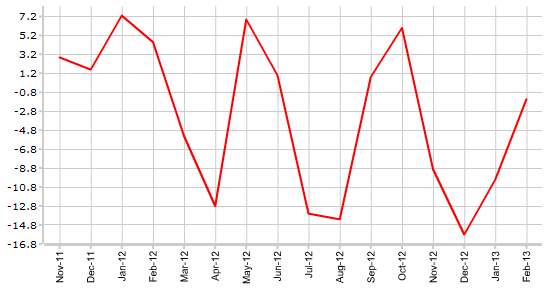 В феврале количество обращений за пособием по безработице увеличилось с -10К до отметки –1,5К, против ожидаемого экономистами снижения до -5К. В марте аналитики финансовых рынков прогнозируют дальнейший рост показателя до отметки 0,0К.