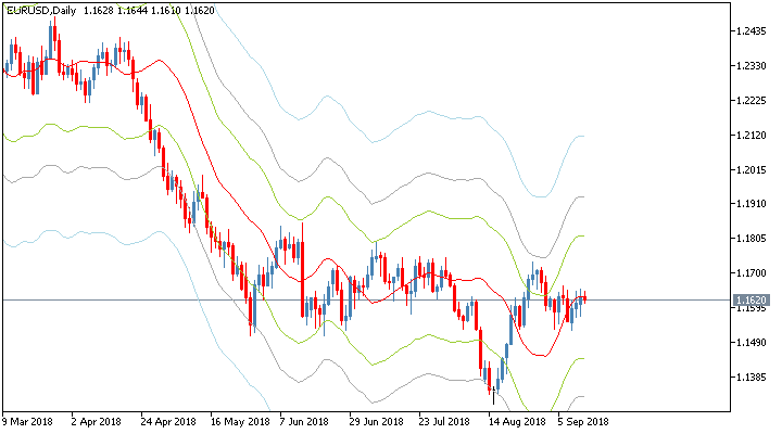 - внутренние полосы обозначают потенциальные точки возврата цены. Они также действуют как динамические уровни поддержки/сопротивления.