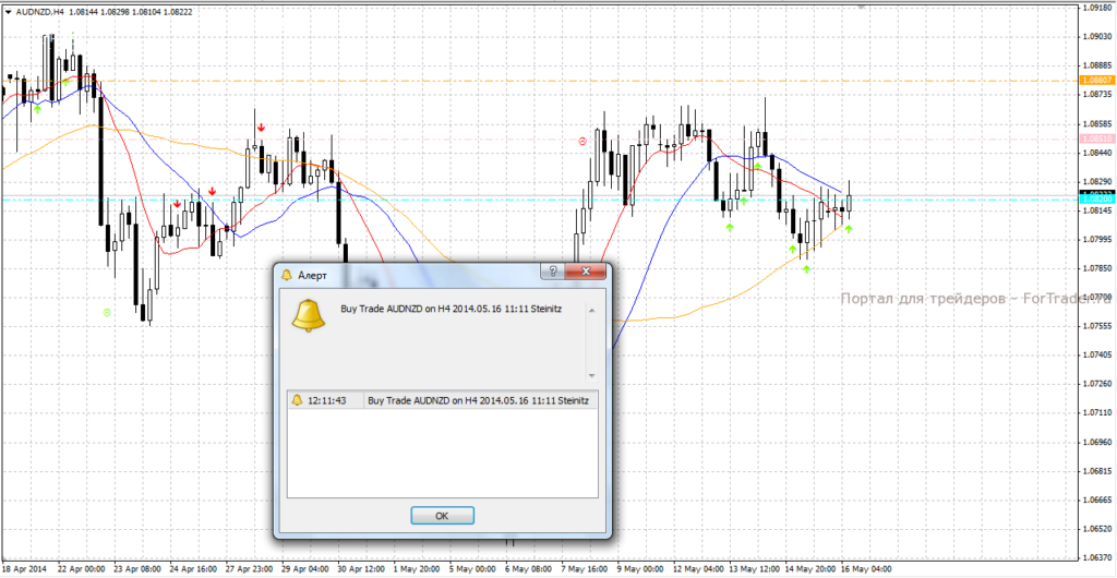 Стоп-лосс не нужен, так как форекс индикатор Steinitz Fractal Breakout автоматически говорит форекс трейдеру, когда выходить. Кроме того, нет необходимости сидеть перед монитором, хватит нескольких минут в день – посмотреть на графики.