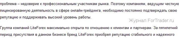 брокера. Этот статус в текущем году подтвержден получением престижной награды «Самый стабильный брокер Азии 2010» на международной выставке «ShowFX World», проводимой среди крупнейших представителей Форекс-индустрии. Отметим, что столь высокая оценка деятельности группы компаний LiteForex, была вынесена независимыми финансовыми экспертами мира.