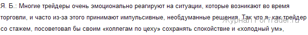 Я. Б.: Думаю, что подавляющее большинство из этих людей просто никогда не связывалось с торговлей на бирже (смеется). Что же касается меня, то я ни в коем случае не считаю это игрой. Трейдинг – это полноценная работа, требующая массу навыков, знаний.