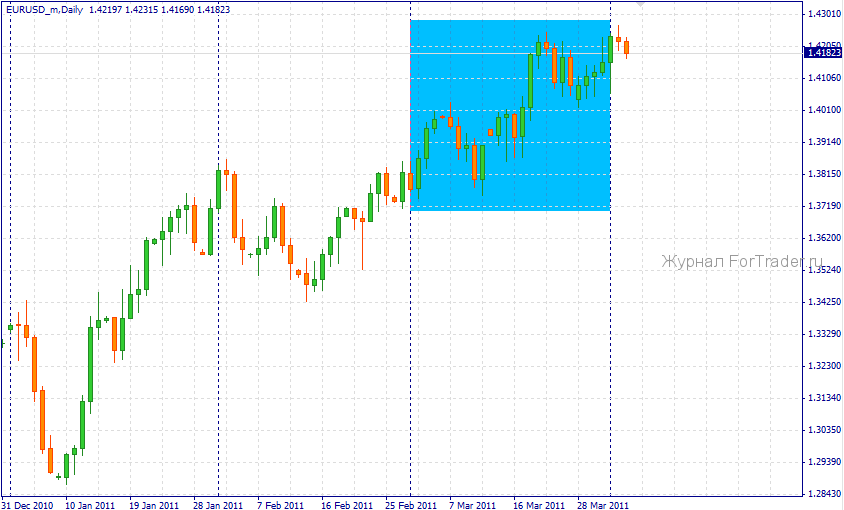 Пример психодиагностики по паре EUR/USD за март 2011 года.