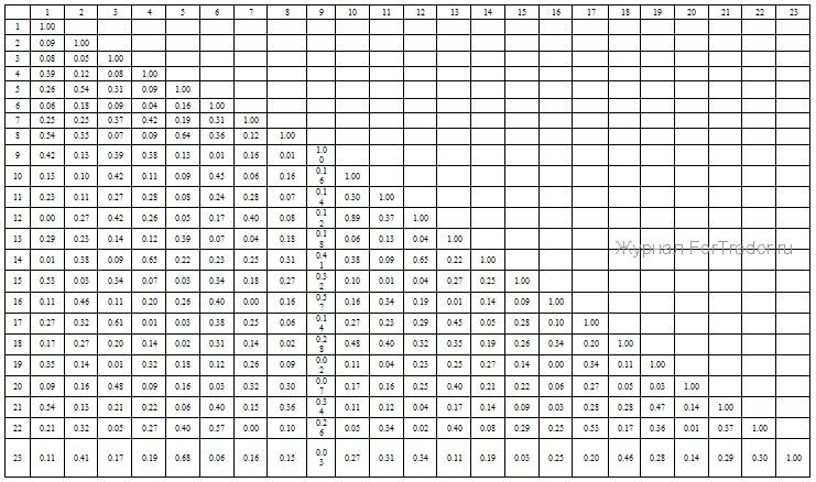 Матрица корреляций движения цены EUR/USD и психологических качеств