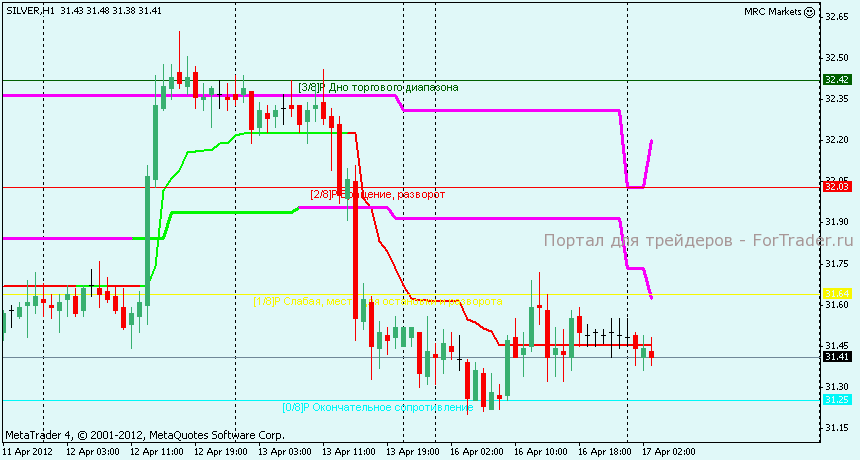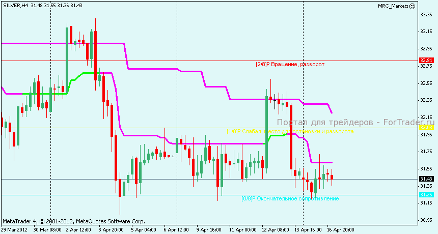 SILVER находится в боковом движении в рамках нисходящего тренда, уровнем поддержки является 31.25, в случае уверенного пробоя этого уровня можно будет говорить о продолжении нисходящего тренда.