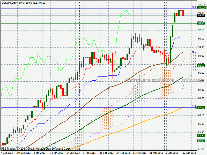 Открыв неделю с гэпом наверх у отметки 98.00, в четверг USD/JPY поднялась к 99.95. Кажется, такое стремительное падение иены уже никого не удивляет: на заседании 4 апреля банк Японии подтвердил серьезность своих намерений, объявив о масштабном монетарном стимулировании.