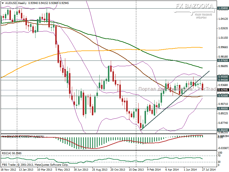 В середине месяца глава ФРС Джанет Йеллен подбросила «косточку» оголодавшим долларовым быкам, заявив, что в случае продолжения улучшения обстановки на американском рынке труда ставки могут быть повышены быстрее, чем предполагалось. Кроме того, среди членов FOMC появился несогласный – глава ФРБ Филадельфии Чарльз Плоссер, не разделяющий общее мнение о том, что ФРС нужно удерживать ставки на низком уровне в течение «значительного времени» после того, как будет завершена программа QE – именно это намерение регулятор повторил в своем июльском заявлении. По мнению Плоссера, американская экономика демонстрирует неплохой прогресс и начать нормализовывать политику можно будет раньше. Сейчас рынок ожидает, что количественное смягчение закончится в октябре, а увеличение ставок начнется в районе середины следующего года. Хотя центральный банк Соединенных Штатов пока не торопится с повышением ставок, он признал снижение уровня безработицы и одобрил текущий уровень инфляции. Заявление ФРС в июле нельзя однозначно назвать ни «ястребиным», ни «голубиным», поэтому настроение трейдеров будет зависеть от того, насколько хорошей окажется дальнейшая статистика по США.