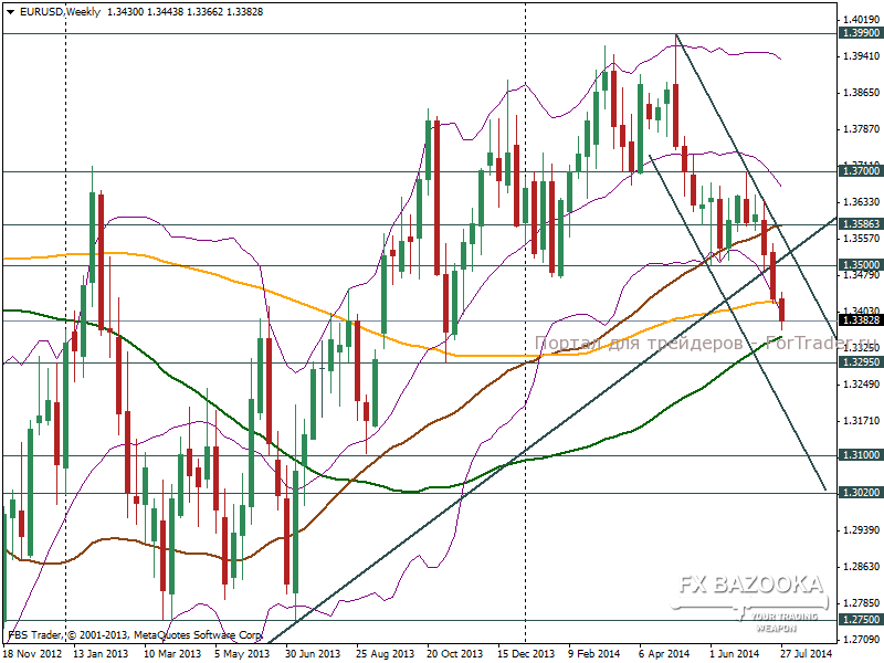 Курс USD укрепился в июле против большинства основных валют. ВВП Штатов вырос во II кв. на 4%, настрой потребителей улучшился, и количество заказов на товары длительного пользования увеличилось. Если американские данные продолжат в том же духе, доллар получит стимул для продолжения роста. Многие эксперты уже заговорили о признаках начала позитивного тренда по доллару.