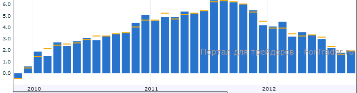 Темп роста потребительской инфляции составил 2% годовых, то есть оказался на уровне ожиданий, но выше предыдущего месяца, когда показатель составил 1.8%.