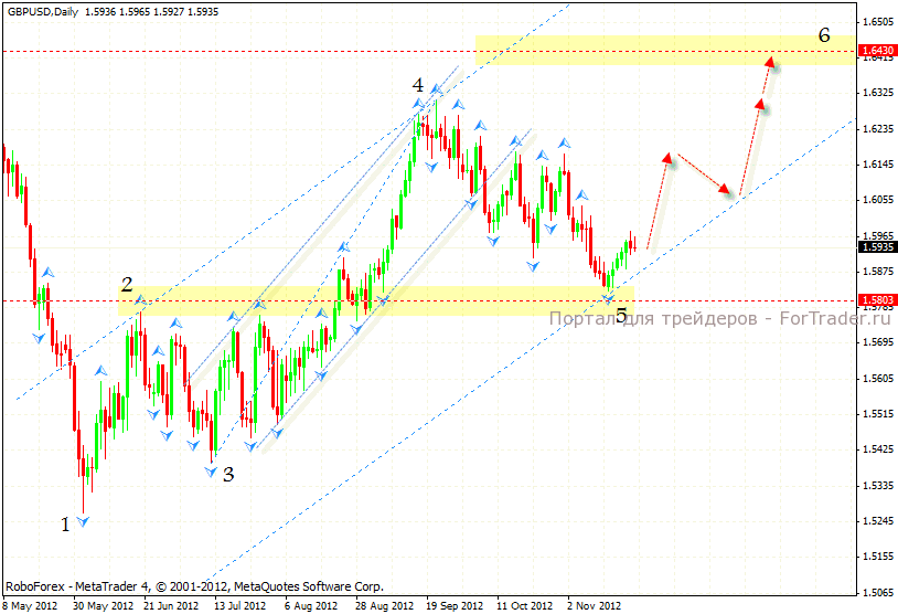 Валютная пара фунт/доллар на текущий момент движется в рамках нисходящей коррекции. В целом на дневном графике пары формируется симметричная модель с общей целью отработки в области 1.6430. Сильный уровень поддержки располагается в области 1.5800. Стоит ожидать начала роста с текущих уровней. Отменой варианта станет падение котировок пары ниже 1.5760.