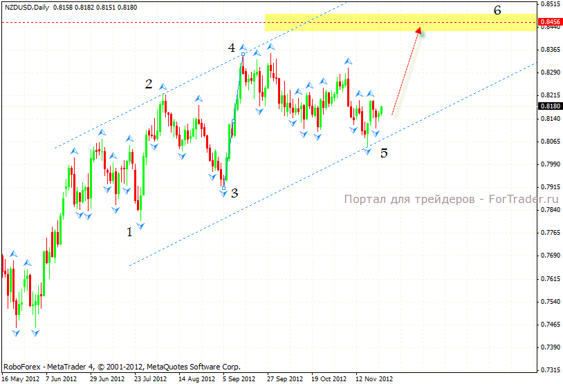 На дневном графике пары также формируется восходящая симметричная модель. Целью отработки выступает область 0.8455. На текущий момент стоит ожидать начала роста и развития восходящего движения на паре. Отменой варианта станет падение котировок пары ниже 0.8060. Наращивать объем длинных позиций рекомендуется с пробитием уровня 0.8290.