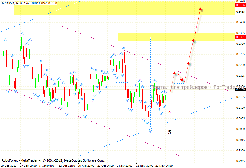Анализ четырехчасового графика пары NZD/USD также указывает на потенциал роста. Формируется разворотная модель перевернутая «Голова и плечи». Ближайшей целью роста выступает область 0.8350. Начала отработки модели стоит ожидать с текущих уровней. Отменой варианта станет снижение пары NZD/USD ниже 0.8050. Наращивать объем покупок рекомендуется с пробитием уровня 0.8200.