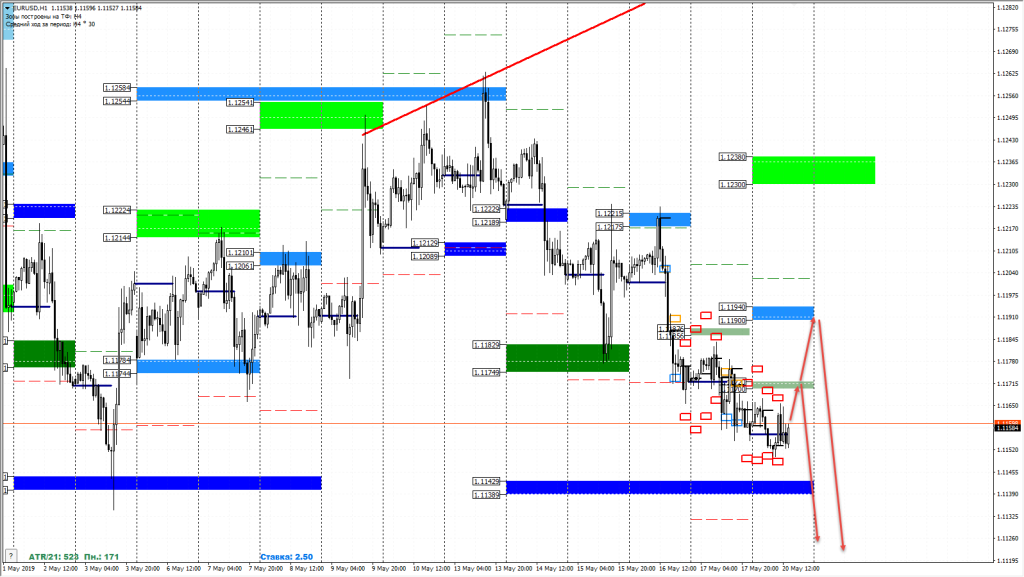 Помимо торговых отношений между США и Китаем на этой неделе внимание участников рынка будет приковано к общеевропейским парламентским выборам, которые состоятся с 23 по 26 мая. Также инвесторы обратят внимание на публикуемые в четверг данные майские индексы деловой активности PMI в обрабатывающей промышленности. Если цифры будут сильными, то евро может сформировать плацдарм для восстановления. Пока же мы видим больше возможностей для укрепления доллара США как актива-убежища.