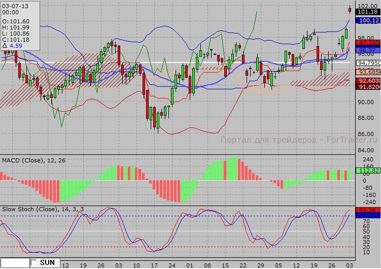 Детали графического анализа демонстрируют, что крайняя комбинация японских свечей «бычья контратака» реализует потенциал покупок до уровня 102.00 $/баррель. Текущая зона сопротивления расположена на уровне 102.00 $/баррель – локальная вершина. Текущая зона основания проходит по уровню 96.00 $/баррель.