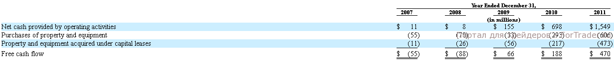Чистый денежный поток, являющийся одним из важнейших индикаторов бизнеса и определяющий способность компании в результате своей деятельности обеспечивать превышение поступлений денежных средств над выплатами, с 2009 года стал положительным. В 2011 году значение выросло более чем в 2 раза по сравнению с 2010 годом и составило 470 млн. долларов.