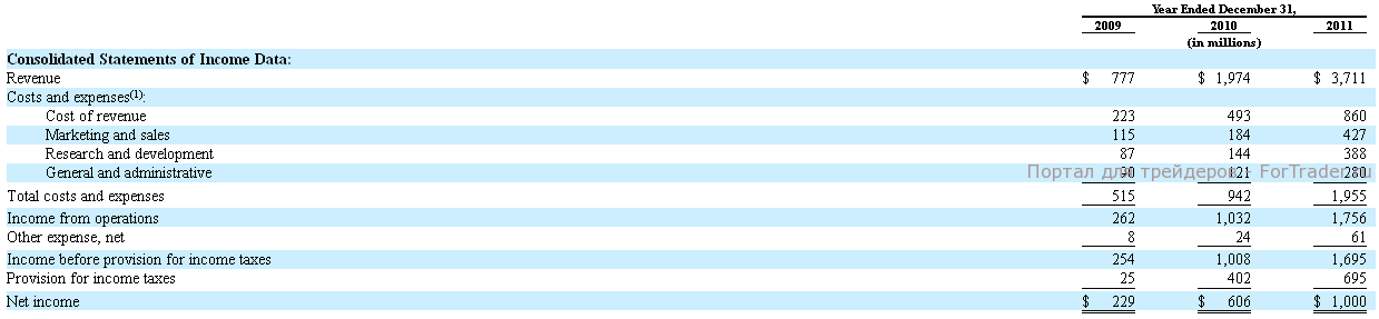В феврале 2012 года был опубликован официальный предварительный проспект эмиссии акций Facebook, где впервые были озвучены финансовые показатели компании. Проанализировав отчетность компании, мы можем сказать, что Facebook является инвестиционно привлекательным проектом, прибыль от которого растет год от года.