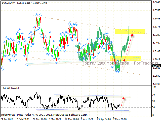 При техническом анализе четырехчасового графика той же валютной пары видно, что зеркальная структура полностью выполнила цели по падению и уже с текущих уровней указывает на тест область 1.3300. Ближайшей целью роста выступает линия сопротивления – 1.3015. Дополнительным сигналом в пользу покупок выступает тест нижней границы канала на Индексе относительной силы. Можно искать возможности для покупок.