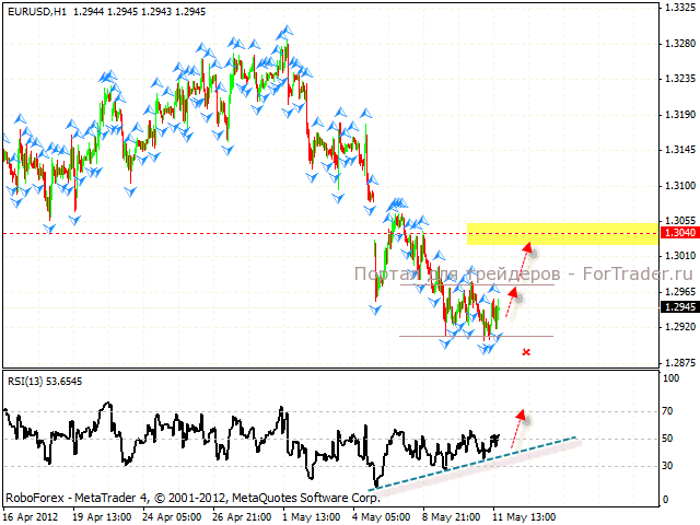 На часовом графике пары формируется разворотная модель «Двойное дно». Ближайшей целью отработки модели выступает область 1.3040. Можно пробовать агрессивные покупки с текущих уровней со стоп-приказом ниже локальных минимумов. Наращивать объем длинных позиций стоит с пробитием уровня 1.2975. Отменой варианта станет продолжения падения евро.
