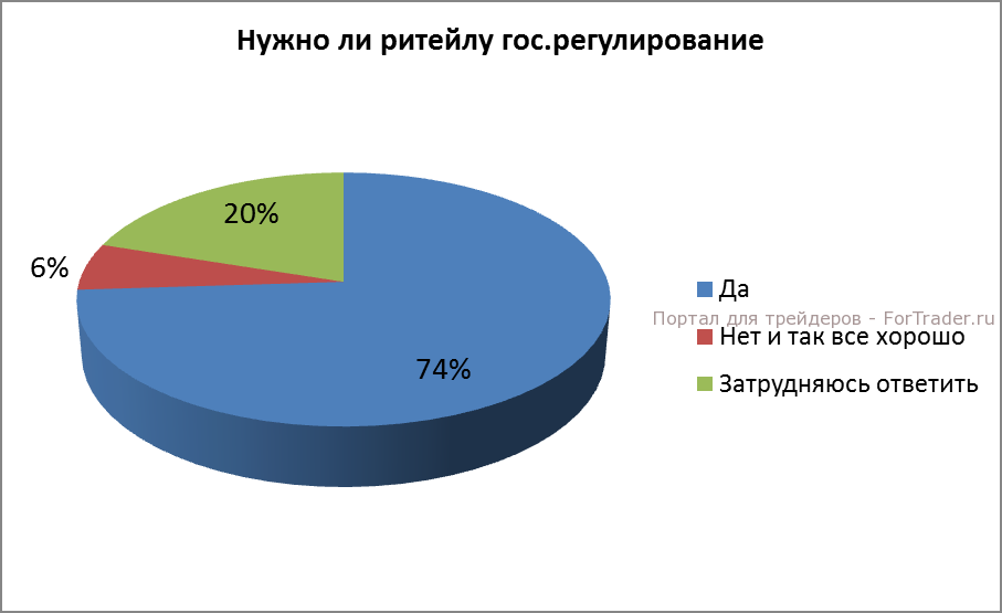 74% принявших участие в опросе трейдеров уверено, что российскому розничному сегменту рынка форекс необходимо государственное регулирование. За сохранение существующих правил, свои голоса отдали только 6% респондентов.