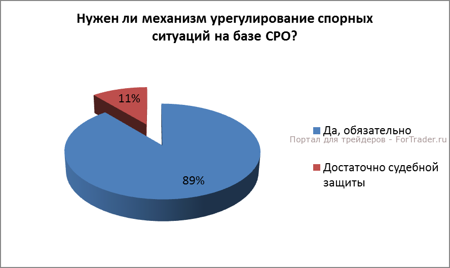 Подавляющее большинство опрошенных – 89% высказалась в пользу создания на базе отраслевой СРО механизма оперативного, досудебного урегулирования спорных ситуаций и только 11% считают, что вполне достаточно судов общей юрисдикции.