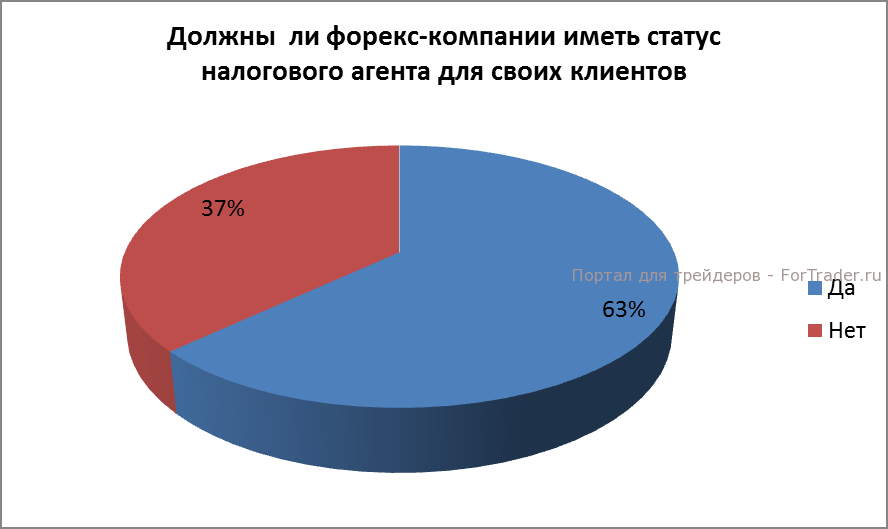 По налогообложению 63% опрошенных хотели бы, чтобы форекс-компании имели статус налоговых агентов для своих клиентов, в то время как 37% предпочитают уплачивать налоги самостоятельно.
