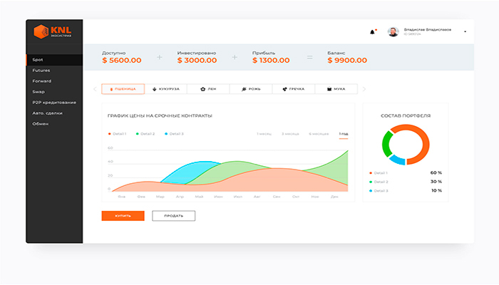 Одно из главных нововведений KNL — товарная биржа с понятным пользовательским интерфейсом. Она предоставляет инвесторам различные инструменты для инвестиций. При этом, фермер получает оборотные средства и может сбыть свою продукцию при помощи платформы.