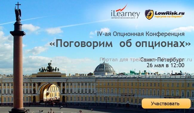 26 мая в Санкт-Петербурге пройдет IV-ая Опционная Конференция «Поговорим об опционах». Организаторы мероприятия – интернет-портал опционного трейдера Андрея Крупенича lowrisk и образовательный ресурс для трейдеров ilearney. Мы приглашаем трейдеров-опционщиков, а также всех, кто интересуется опционной торговлей!