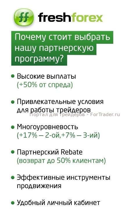 «Работая в этом бизнесе, некоторые партнеры боятся в какой-то момент не получить свою прибыль. Никаких оснований для этого нет, если, конечно, вы не пытаетесь провернуть мошенническую схему. Для многих брокеров партнерка — чуть ли не основной инструмент продаж, поэтому было бы глупо бить себя по рукам. Я работаю с «FreshForex» более 2-х лет, и у меня ни разу не возникло проблем с выводом средств с партнерского счета или неправильным начислением прибыли» (подробнее об этом см. Условия партнерской программы).