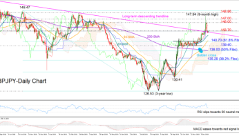 GBPJPY selling pauses near descending trendline