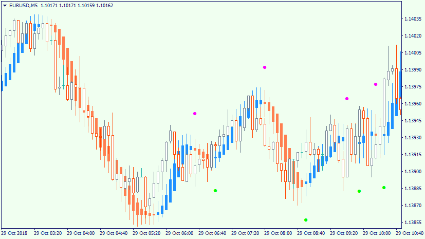 It is the 27th version of popular indicator Heiken Ashi, which rather early signals about the trend change. It is good with oscillator and the levels indicator. The signal on the trend change are also provided by purple dots (sell) and green dots (buy).