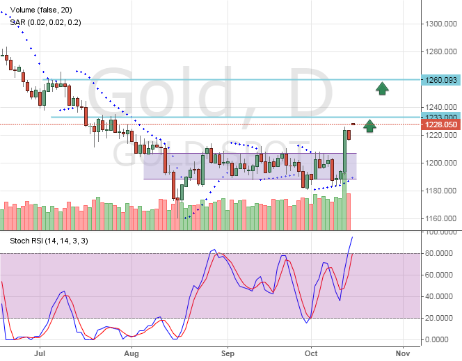 Уровень 1200 долларов за унцию, долгое время притягивающий котировки золота, как магнит, не смог их удержать. После долгих колебаний в узком ценовом диапазоне цена на золото пробила его верхнюю границу, пользуясь ослаблением доллара и падением фондовых рынков.