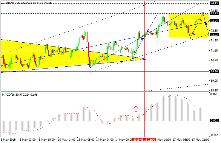 Сырьевой рынок получил новый импульс для повышения вчера утром. Баррель Brent растет в понедельник, 20 мая, на 1,1% и торгуется по 72,96 USD, хотя ранним утром сырье поднималось в область 73,40 USD.