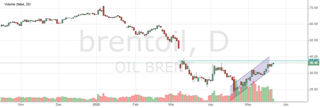 Цена на нефть Brent и других популярных марок продолжает активно расти, вплотную приблизившись к уровню открытия мартовского кризисного гепа. Причина все та же — сигналы на восстановление экономического баланса в мире после срыва сделки ОПЕК+ и периода самоизоляции.