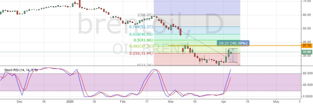 В ожидании внеочередного заседания ОПЕК+, которое было перенесено на четверг, 9 апреля, рынок нефти решил скорректироваться. Т.к. стоимость барреля нефти была на низах, прирост в 10$ оказался крайне значительным — 40%.