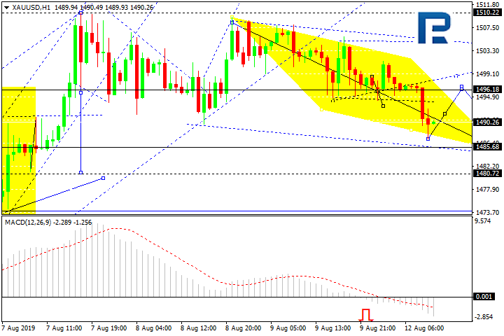 На 4-часовом графике XAUUSD торгуется в структуре коррекции к уровню 1484,50. Затем рассмотрим звено роста к 1496,20. После этого возможно продолжение коррекции к уровню 1480,80. На этом ожидаем завершение коррекции. Далее рассмотрим возможность роста к 1550,00.