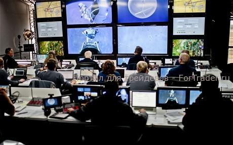 Члены комиссии смотрят прыжок Феликса Баумгартнера